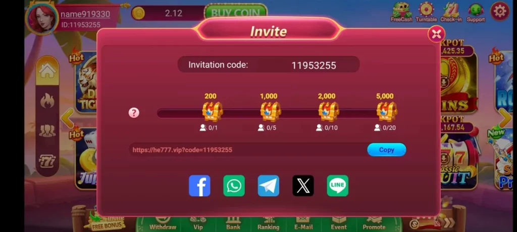 The HE777 app may offer multi-level referral bonuses. That means you can continue earning small rewards even when your friends invite more users.If your friend invites another player using their link and your code, you might earn a small secondary bonus as well.